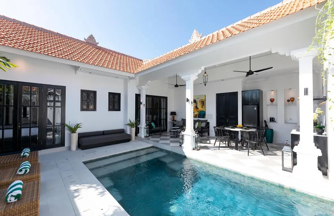 Martini Beachside Villa 3 is equipped with an electric kettle, coffee and tea making equipment, and a fridge for self-catering in an outdoor dining area. Guests can dine at Petit Gourmet Bali located a few steps from the property. Ngurah Rai International airport is situated 0.6 miles from the Canggu villa.